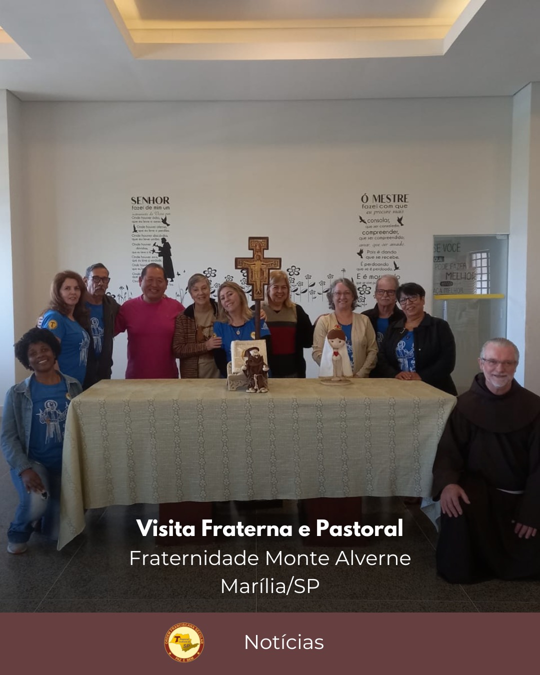 No dia 13 de julho de 2025 o Coordenador do 7º distrito, Teruo Yamaki, sua esposa, Rita Yamaki, e Frei André Gurzynski, OFM, Assistente Espiritual Regional, estiveram na Fraternidade Monte Alverne, da cidade de Marília, SP, realizando Visita Fraterna e Pastoral. Foram momentos de vivência fraterna, orientações e aprendizados, incluindo visitas a algumas irmãs que estão no SEI. A VFP foi muito boa e frutuosa. Paz e Bem!