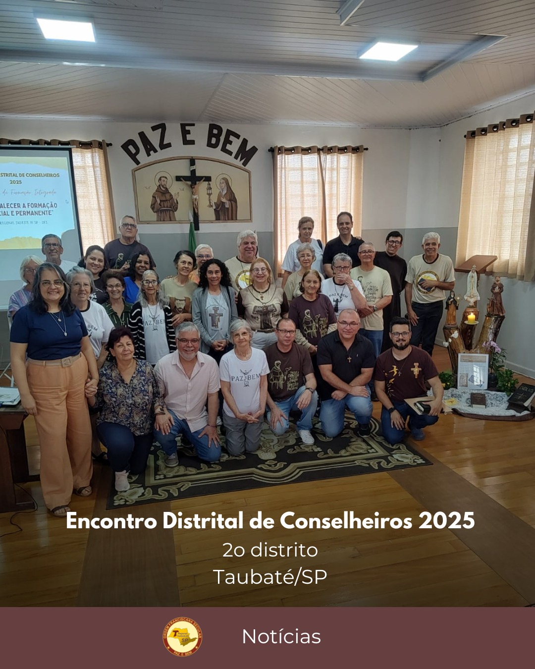 No último domingo, 23 de novembro de 2025, as fraternidades do 2º distrito se reuniram em Taubaté para o Encontro de Conselheiros. Os coordenadores do distrito, Fátima Lanfrendi e João Paulo Nascimento, organizaram e conduziram o momento de avaliação da caminhada das fraternidades.